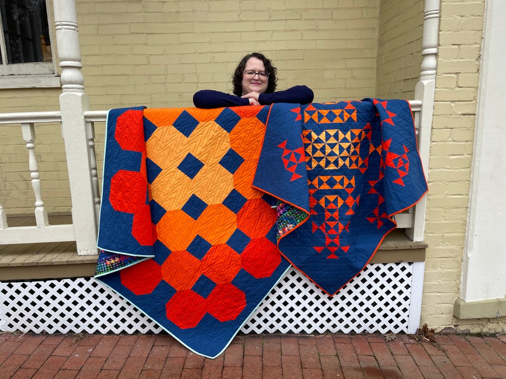 Greetings Quilt-lings! Welcome to my little corner of the universe where I love to quilt, design, teach, and sew bags. I was 11 when I first learned to sew for a 4-H project. But it wasn’t until I graduated college that I became obsessed with quilting. I live in Northern Virginia with my husband who claims he doesn’t work with space aliens, 3 humanoid children and two furry space creatures passing as dogs. Join me as we quilt into the great beyond.